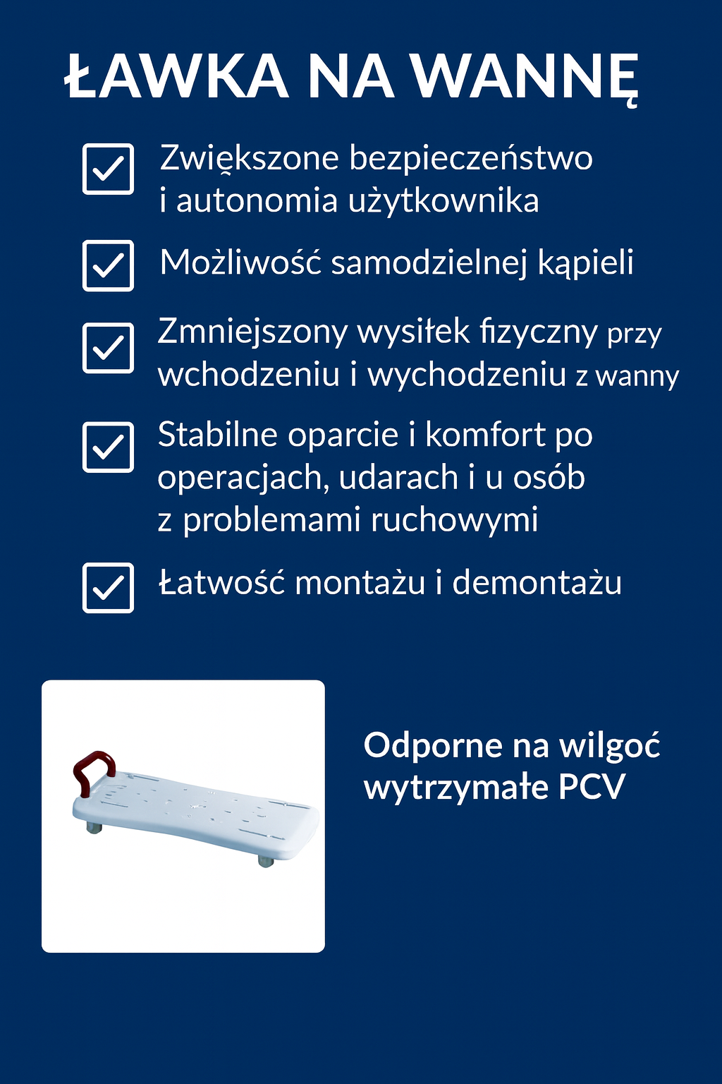 Zmniejsza wysiłek fizyczny przy wchodzeniu i wychodzeniu z wanny.