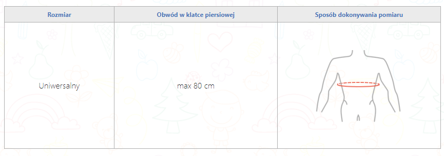 Taśma, do której przymocowano podwieszkę dłoniową, przebiega przez klatkę piersiową dziecka i obejmuje jego ramię, zapobiegając tym samym niekontrolowanemu jego odwiedzeniu. Zakończona specjalnym zapięciem rzepowym Velcro, zapewnia płynną regulację kompresji i elewacji kończyny.