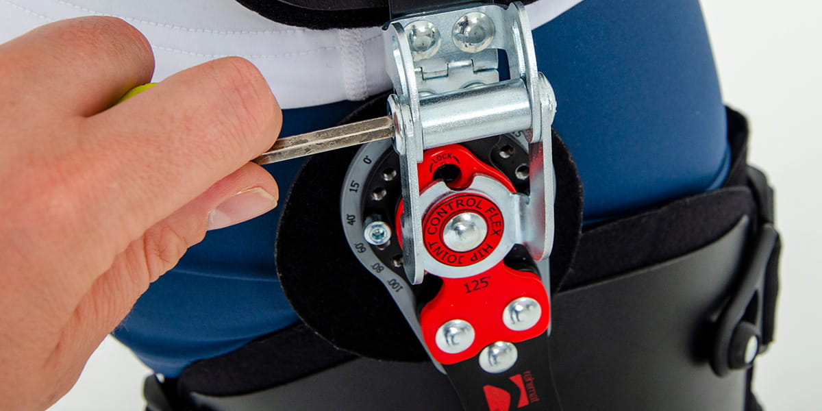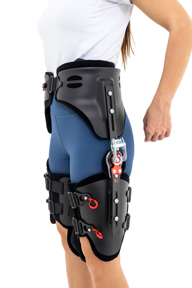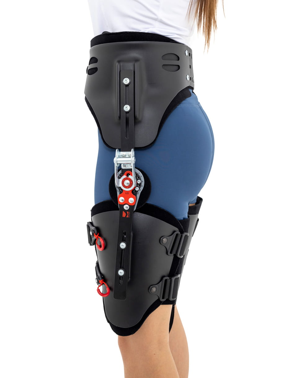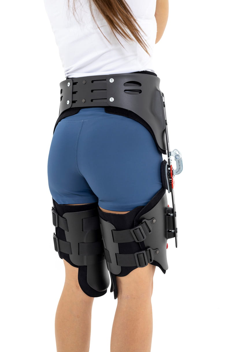 AM-SB-05 DUAL to uniwersalna orteza stawu biodrowego z regulacją kąta zgięcia stawu oraz regulacją odwiedzenia kończyny dolnej.