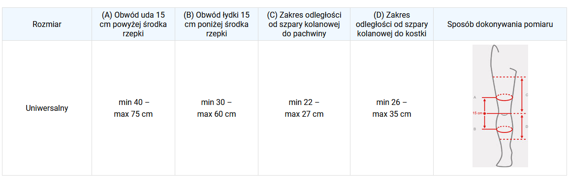 Orteza występuje w jednym, uniwersalnym rozmiarze i pasuje zarówno na prawą jak i lewą nogę.