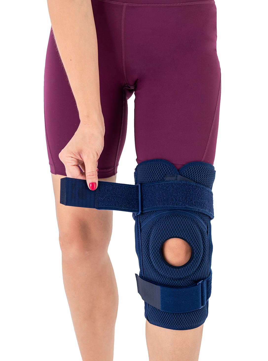 Perforacja wewnętrznej części ortezy skutecznie odprowadza wilgoć i nadmiar ciepła ze skóry pacjenta. Anatomicznie ukształtowany pierścień wykonany z pianki o właściwościach przeciwgrzybiczych dodatkowo stabilizuje staw rzepkowo-udowy.