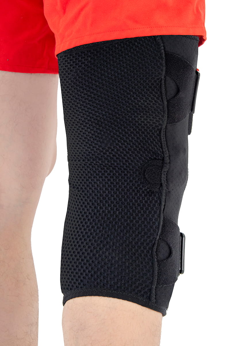 Orteza stawu kolanowego AS-KX-01 posiada specjalne silikonowe nakładki, które chronią kłykcie kości udowej przed uciskiem w trakcie użytkowania ortezy i zwiększają komfort. Dodatkowo, orteza kolana AM-KX-01 posiada naniesiony po stronie wewnętrznej silikon, który doskonale chroni przed zsuwaniem się ortezy w trakcie użytkowania.