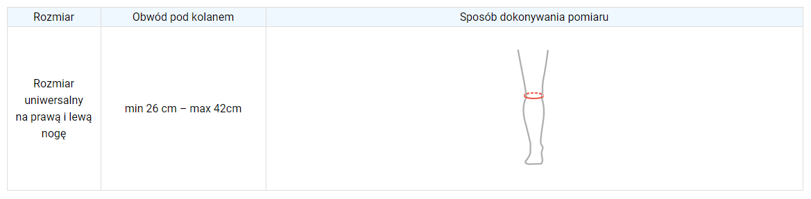 Orteza występuje w jednym, uniwersalnym rozmiarze. Produkt pasuje zarówno na prawą jak i lewą nogę.