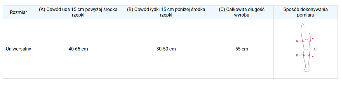 Całkowita długość ortezy: 55 cm