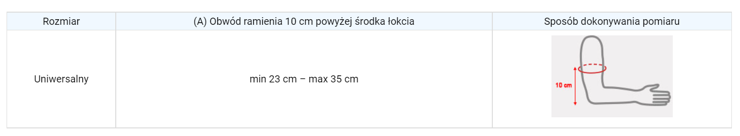 Uniwersalność rozmiaru – orteza jest uniwersalna, nie ma potrzeby dokonywania pomiarów, wyrób dopasowuje się do każdego obwodu łokcia.