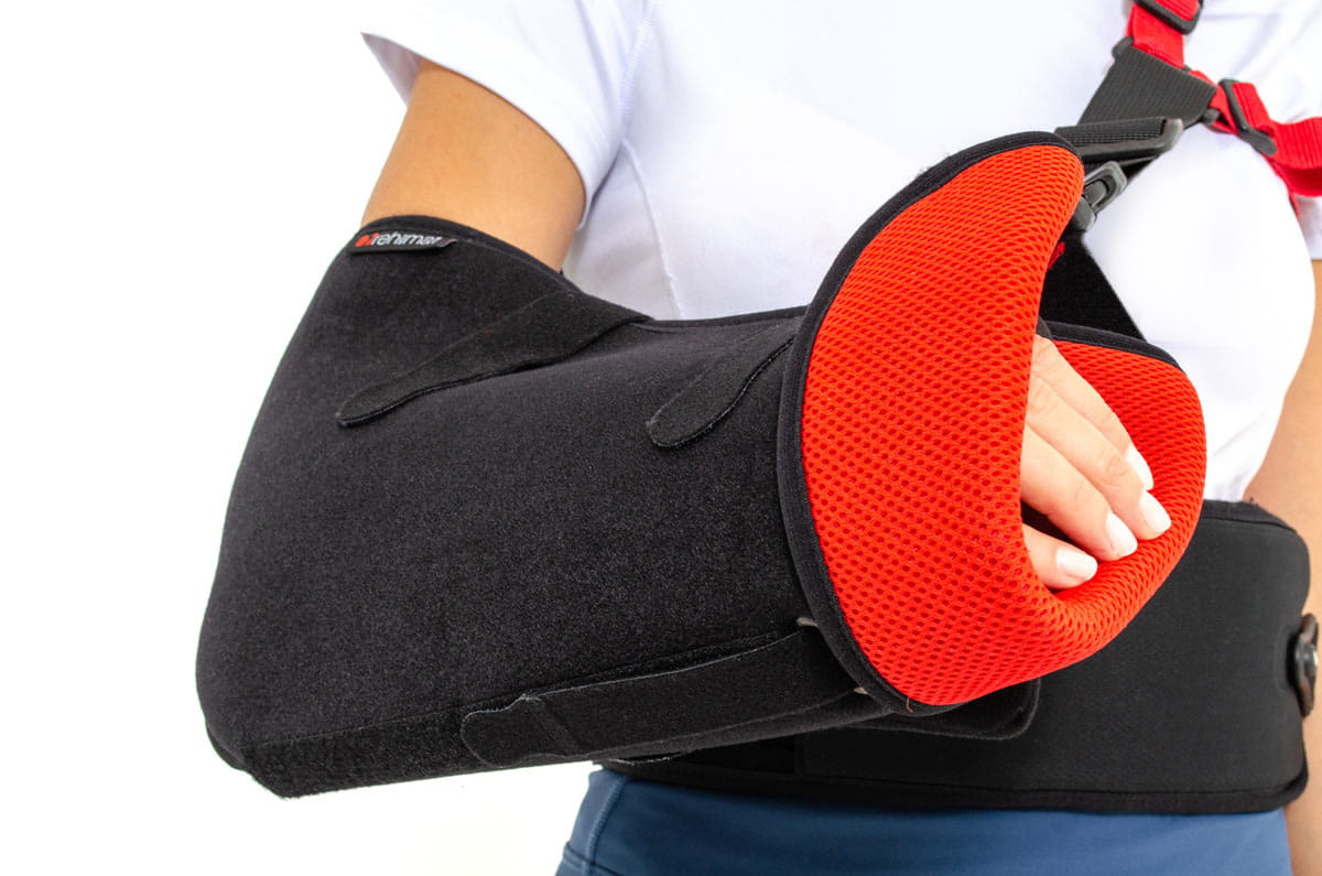 Od góry rękaw ortezy zamykany jest zapięciem obwodowym stabilizującym kończynę górną od góry.