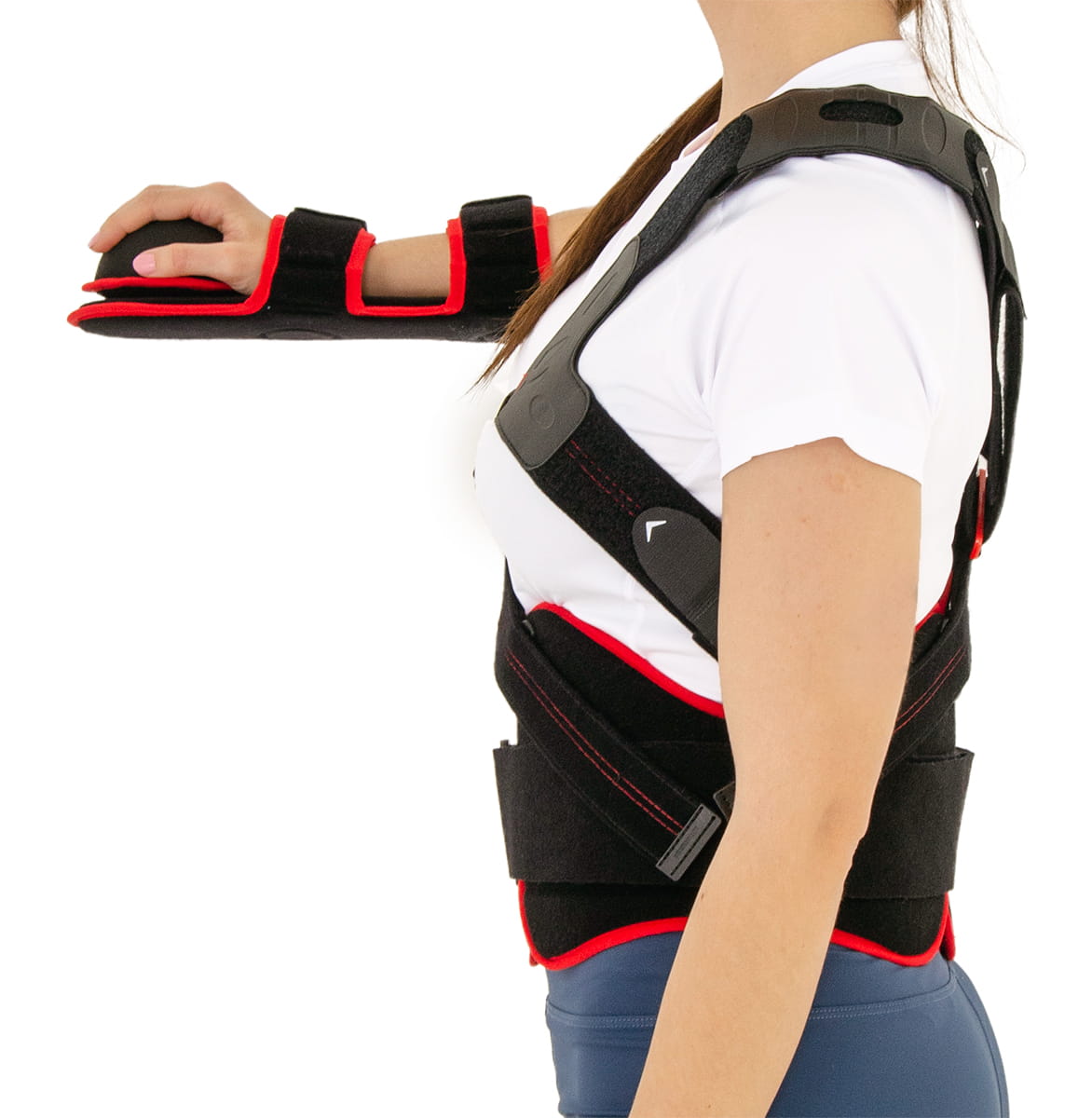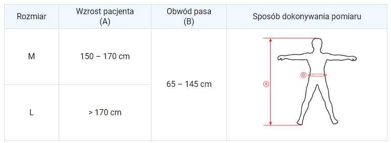 Do stabilizacji wyrobu na ciele pacjenta służy szeroki pas biodrowy oraz dodatkowo wyrób wyposażono w zestaw składający się z półsztywnej poduszki biodrowej oraz taśm odwodzących. Dla ułatwienia montażu, zestaw został oznaczony kolorem czerwonym. Dzięki zastosowaniu tego zestawu istnieje możliwość płynnej regulacji kąta rotacji ramienia w stawie ramiennym.