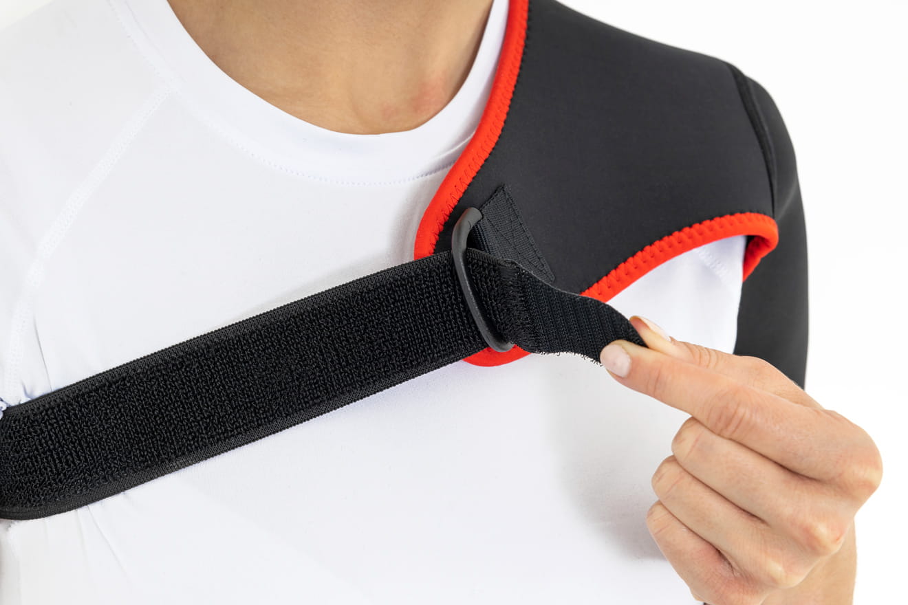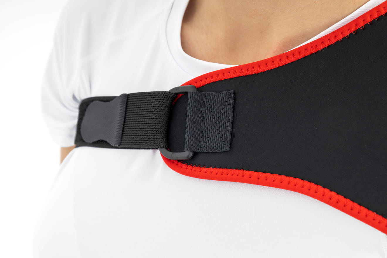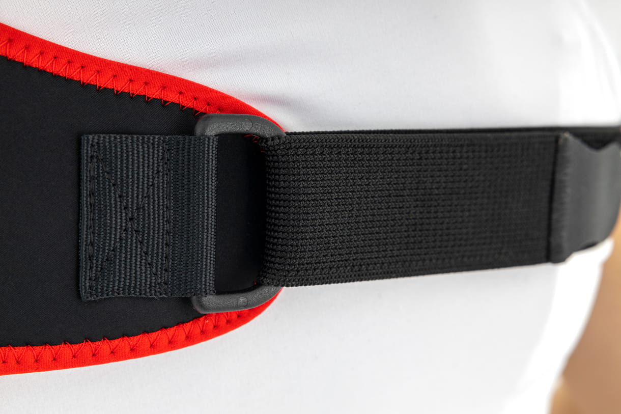 Łatwe zakładanie i zdejmowanie ortezy następuje dzięki wysokiej sprężystości i miękkiej taśmie mocowanej w górnej części ciała.