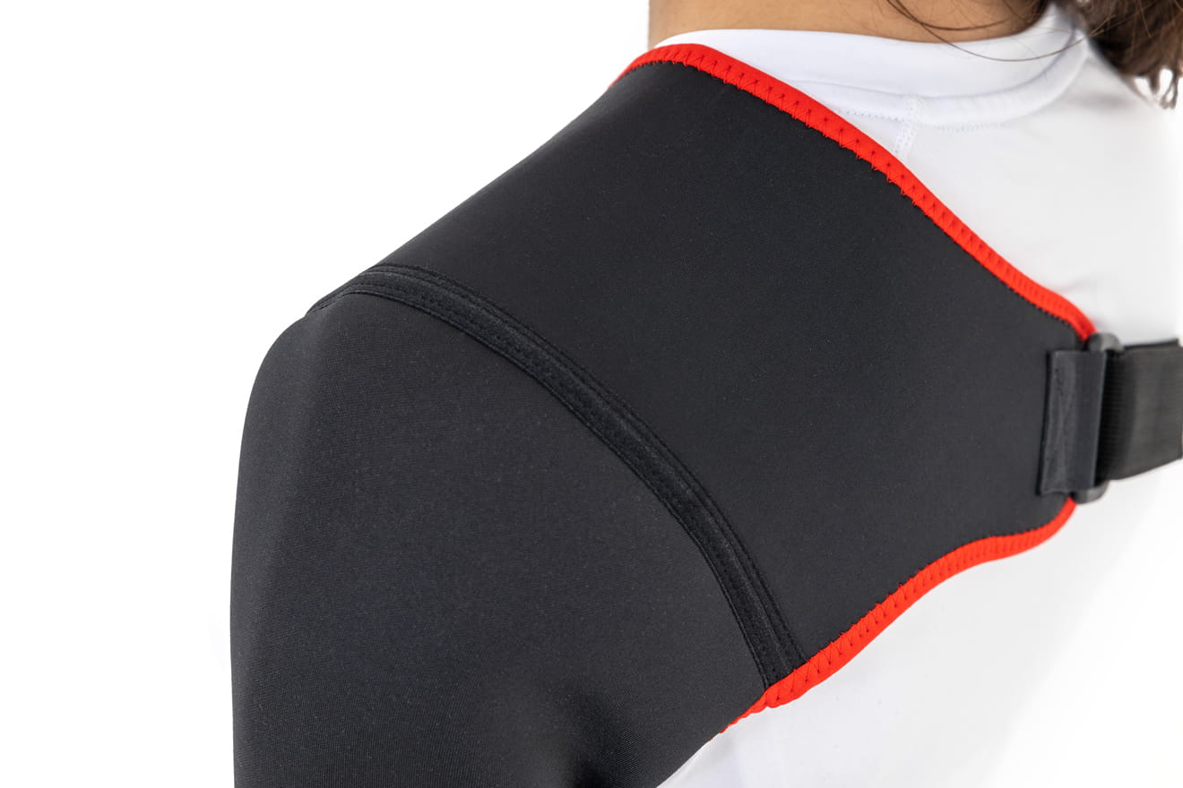 Element ramienia ortezy został wykonany z surowca AeroSpace II™. Element barkowy wykonany został z ActivePren™.