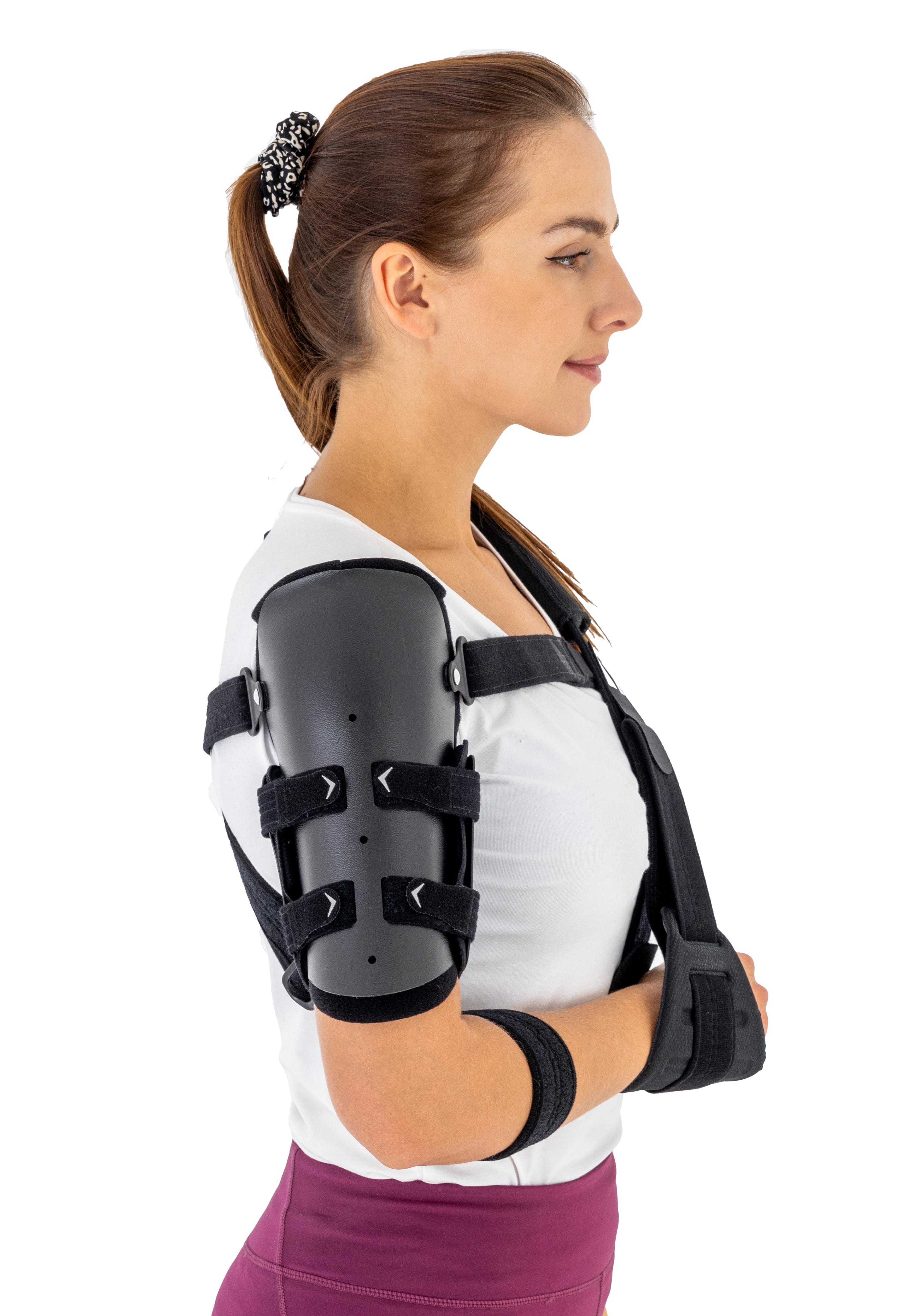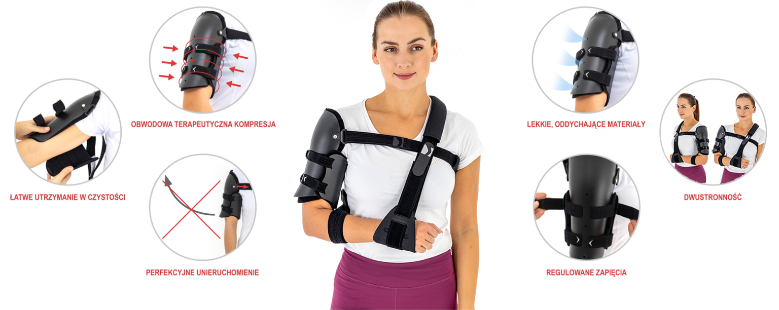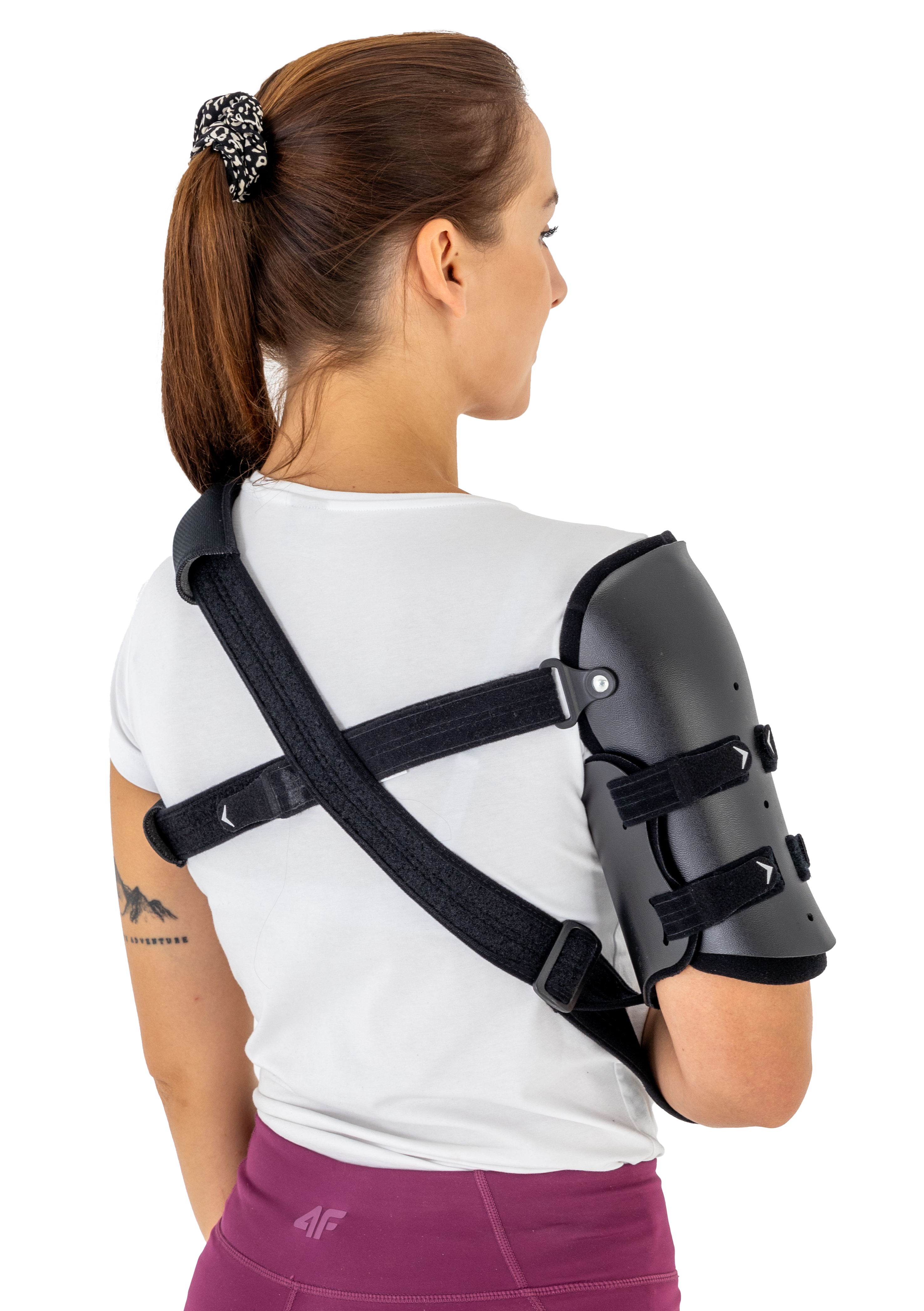 Ten model ortezy barku wyjątkowo skutecznie stabilizuje kość ramienną w przypadku złamań trzonu, jednocześnie umożliwiając pełny zakres ruchu w łokciu i dłoni, co zapobiega występowaniu przykurczów.
