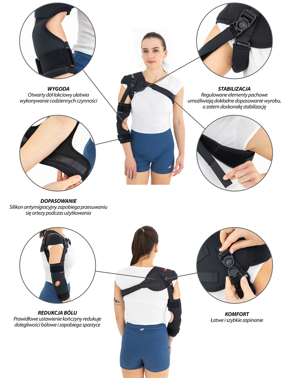 Nasza orteza neurologiczna została wykonana z przewiewnego i przyjemnego dla skóry surowca. Koryguje ona ustawienie głowy kości ramiennej w panewce, a zatem zmniejsza przyczynę bólu. Pomaga ustabilizować ramię i ponownie umieścić je we właściwym miejscu. Zapewnia wyraźną ulgę, łagodzi ból i prowadzi do lepszej ogólnej postawy ciała.