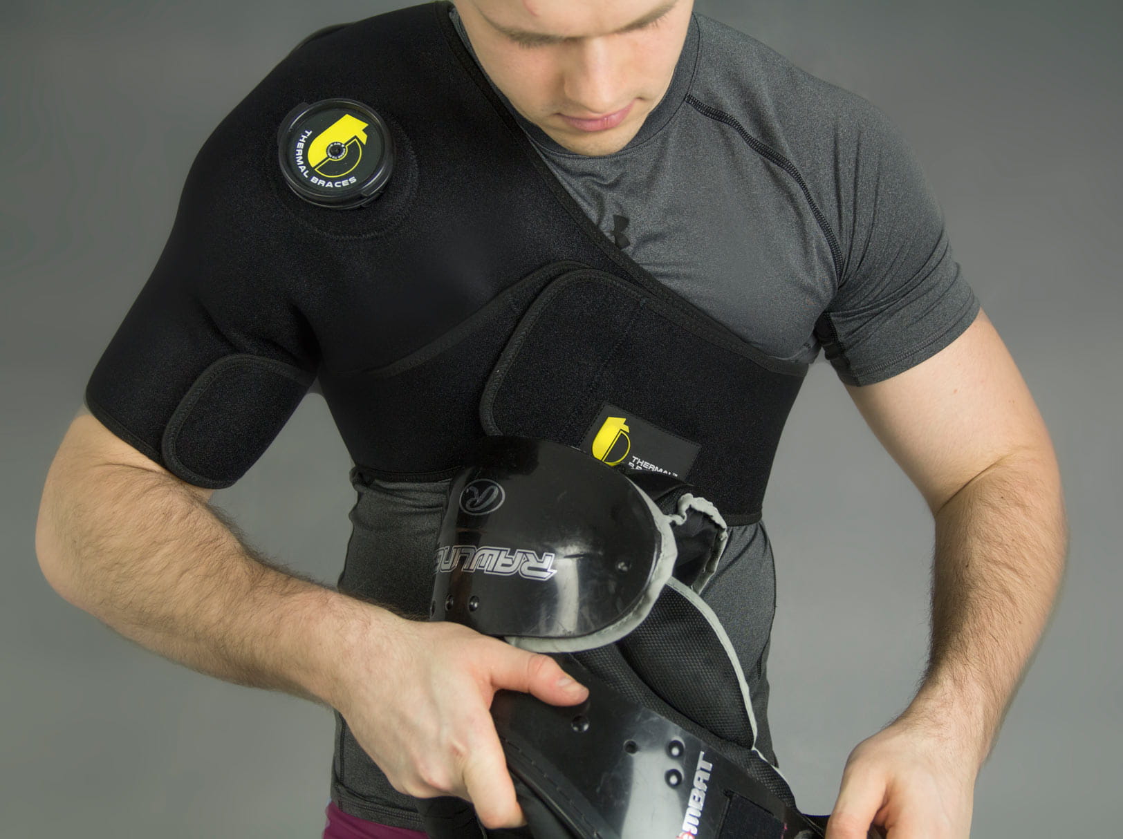Orteza barku TB-03 to kompresja i krioterapia w 1 produkcie! Nasza orteza barku to trzyczęściowe termalne rozwiązanie, gwarantujące natychmiastowe uśmierzenie bólu. Rozbudowana część barkowa, wykonana z neoprenu zapewnia stałą kompresję stawu. 2 otwory umożliwiają zastosowanie 2 worków z kruszonym lodem, chłodzących przednią i tylną część stawu barkowego. Na wieczkach worków na lód umieściliśmy specjalistyczny zawór odpowietrzający, który zapewnia doskonałe przyleganie woreczka do okolic barku, otulając je niska temperaturą i tworząc tym samym natychmiastowy „zimny opatrunek”.