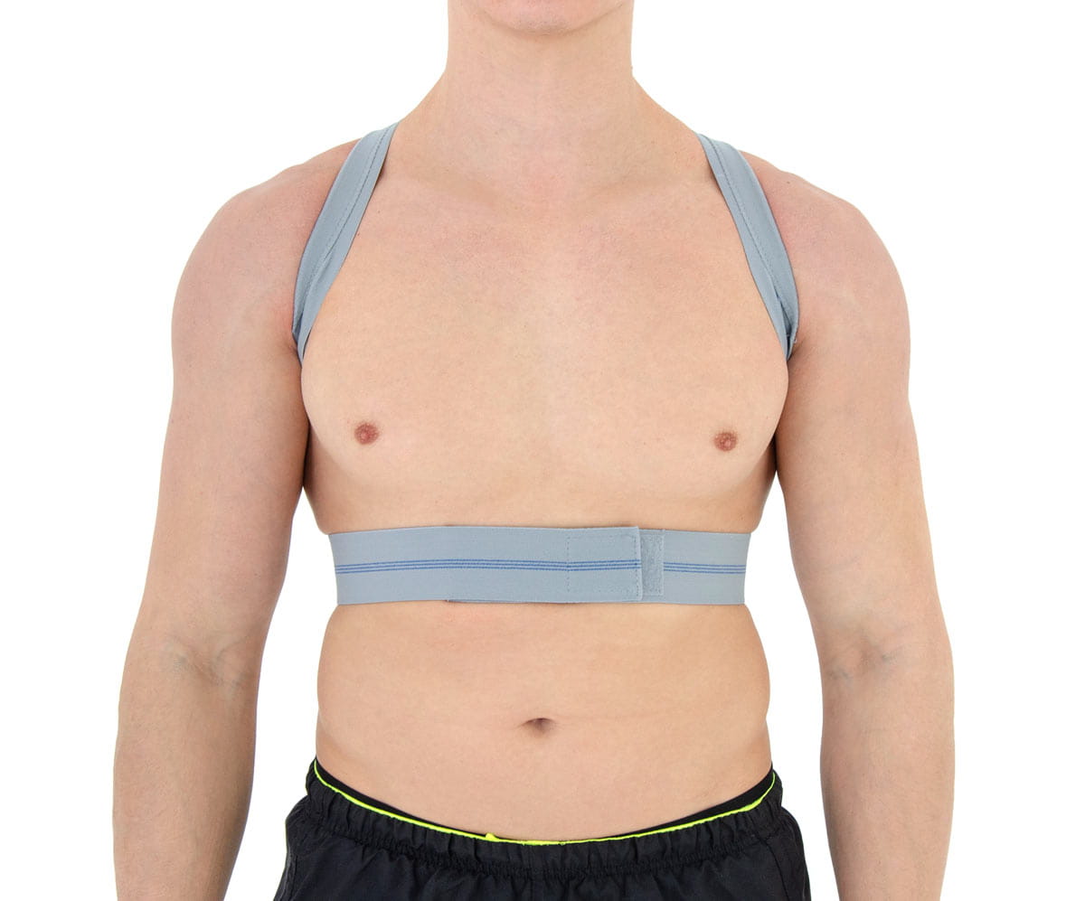 Orteza barkowa – prostująca plecy AM-PES-03 wykonana jest z lekkiej, bawełnianej gumy ortopedycznej, wyposażona w taśmy VELCRO. Bardzo prosta konstrukcja wyrobu umożliwia pacjentowi samodzielne jego zakładanie. Ściśle określona elastyczność gumy powoduje, iż wyrób idealnie dopasowuje się do ciała pacjenta (pasuje do każdego typu sylwetki). Odpowiednie ukształtowanie wyrobu w dołach pachowych powoduje, że wyrób odpowiednio stabilizuje barki nie drażniąc naskórka.
