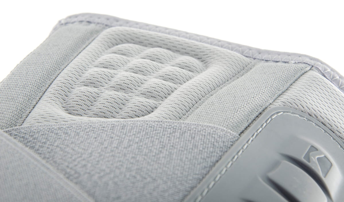 Tylna część ortezy została wykonana z Active3D™. Przód i boki ortezy wykonano z surowca AirRubber™. Pasy dociągowe wykonane z surowca AirRubber III™.