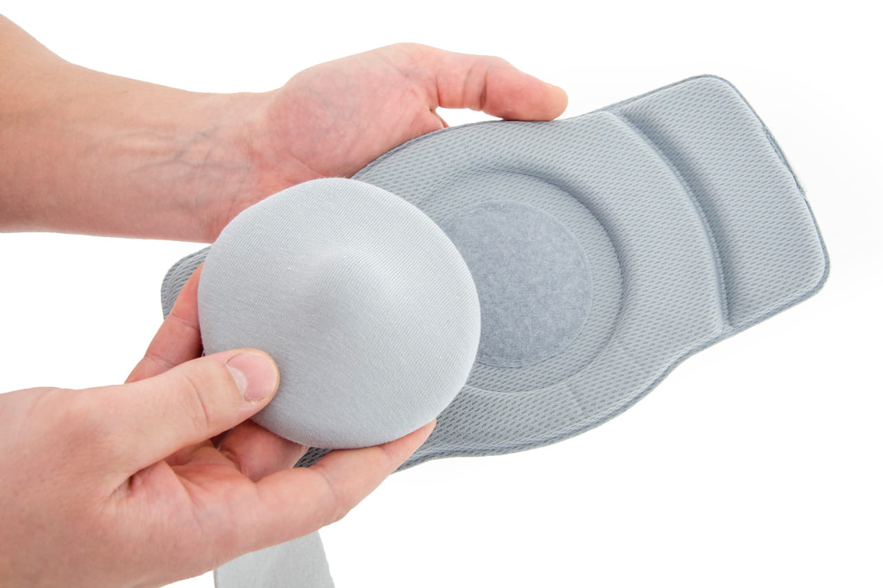 Pelota ta została anatomicznie wyprofilowana, a zastosowanie miękkiego silikonu powoduje, że idealnie dopasowuje się ona do ciała pacjenta i szczelnie zamyka otwór przepukliny, dostosowując się do jego kształtu. Dzięki zastosowaniu na pelotę tak plastycznego surowca, nawet długotrwałe stosowanie ortezy nie powoduje powiększania otworu przepukliny.