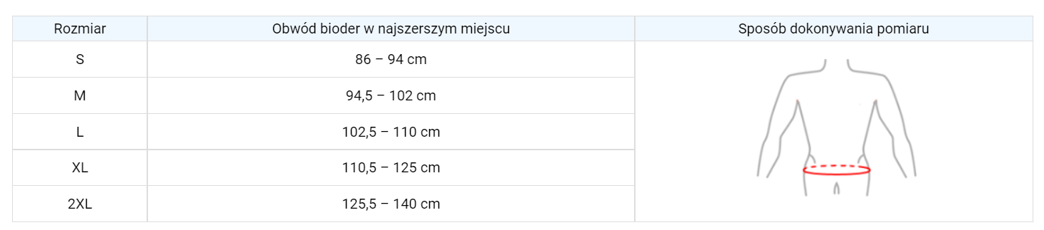 Dodatkowo wyrób posiada pas pachwinowy pomagający w precyzyjnej stabilizacji ortezy na ciele pacjenta.