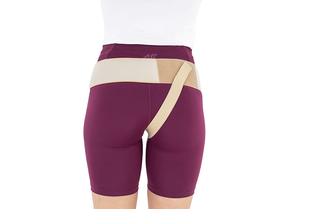 - jako zabezpieczenie pachwin po operacjach, w przypadku słabego i wiotkiego aparatu mięśniowo-powięziowego nie dopuszcza do przemieszczenia się trzewi na zewnątrz pierścienia kanału pachwinowego,
