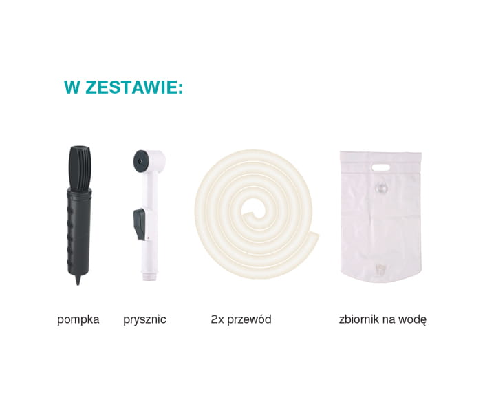 Wyposażenie w zbiornik na wodę oraz w słuchawkę prysznicową (z przyciskiem) znacznie ułatwia spłukanie szamponu z włosów. Basen posiada zawór oraz przewód odpływowy dzięki czemu istnieje możliwość łatwego wypuszczenia wody np. do wiaderka lub innego pojemnika. Dzięki zastosowaniu odpowiedniej technologii zgrzewania basen jest niezwykle wytrzymały i trwały – nie rozszczelnia się. W zestawie znajduję się pompką umożliwiająca szybkie i łatwe napompowanie basenu.