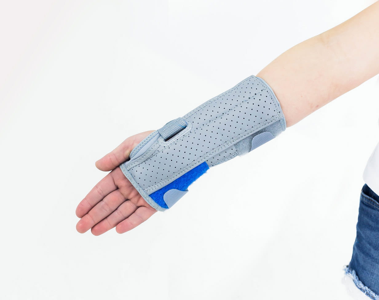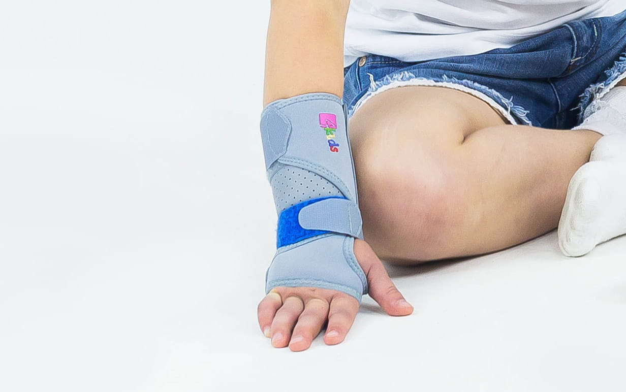 Dzięki anatomicznemu kształtowi aluminiowa szyna dłoniowa doskonale dopasowuje się do kształtów ręki dziecka, zapewniając unieruchomienie stawu nadgarstkowego. W części dłoniowej szyna unieruchamia i stabilizuje oba szeregi małych kości nadgarstka takich jak: kość łódeczkowata, księżycowata, trójgraniasta, grochowata, czworoboczna większa oraz mniejsza, główkowata i haczykowata. Natomiast, w części przedramienia szyna stabilizuje kość promieniową i łokciową. Zastosowanie medycznego materiału AirSanmed powoduje odciążenie szyny i zabezpiecza skórę dziecka przed otarciami i odciskami, a także zwiększa komfort użytkowania ortezy.