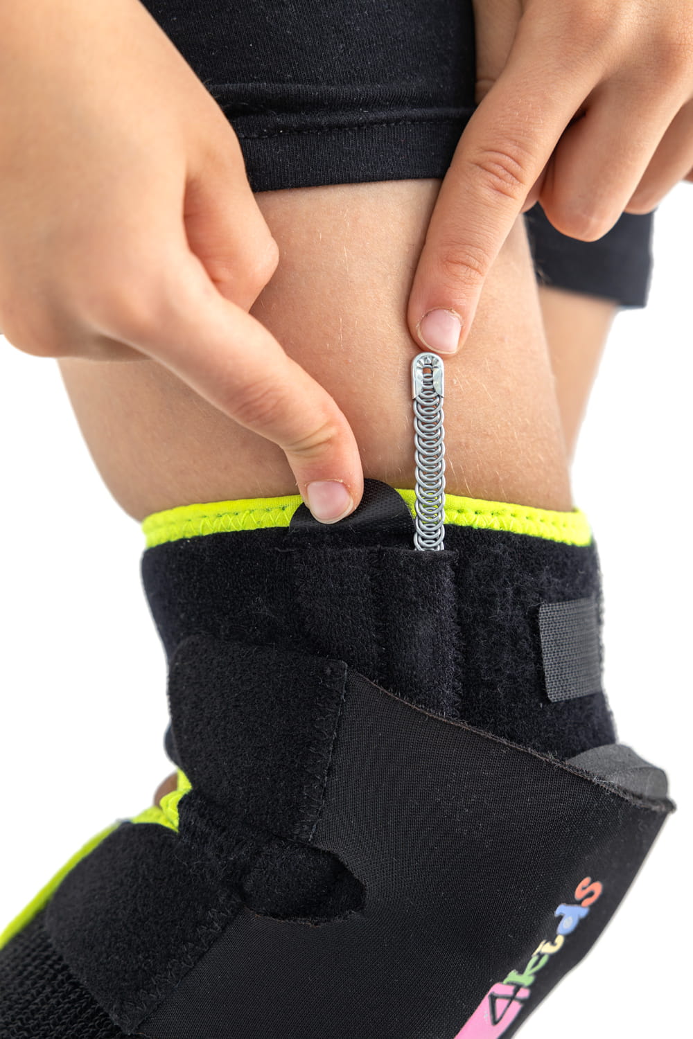 Orteza dziecięcia FIX-KD-34 posiada zapięcia rzepowe, które zapewniają płynną regulację obwodową. Dzięki takiemu rozwiązaniu, orteza może być stosowana zarówno w stanie ostrym, gdy widoczny jest obrzęk i wysięk, jak również w trakcie leczenia zachowawczego i profilaktyki.
