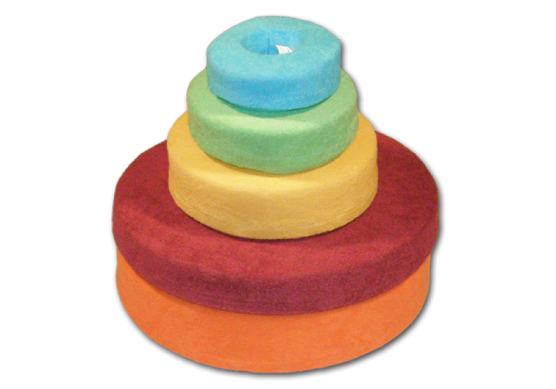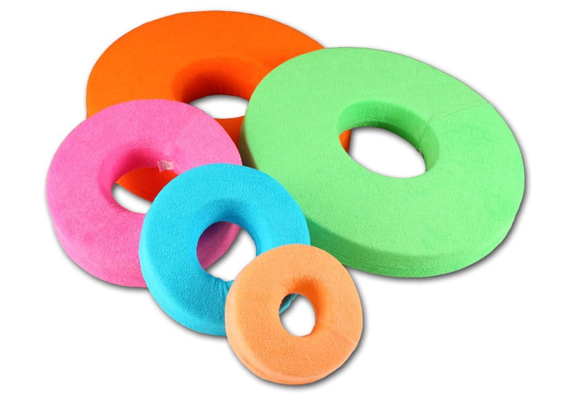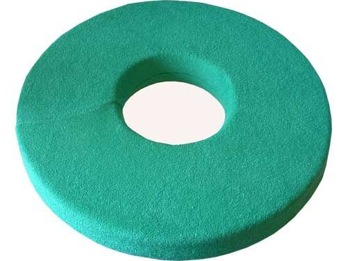 Krążki przeciwodleżynowe wykonane są ze średnio-twardej pianki, pokrytej przyjaznym dla skóry bawełnianym pokrowcem frotte. Pokrowiec można bez problemu ściągnąć np. do prania.