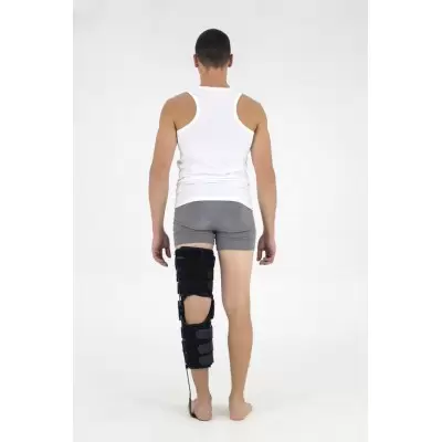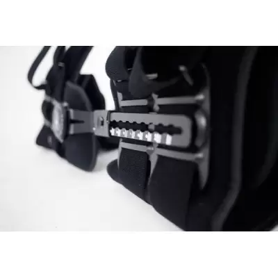 Dodatkowo, orteza wyposażona jest w szynę z regulacją długości. Dopasowanie długości szyny jest bardzo proste - wystarczy przekręcić śruby i rozsunąć lub zsunąć szynę na odpowiednią długość podudzia.