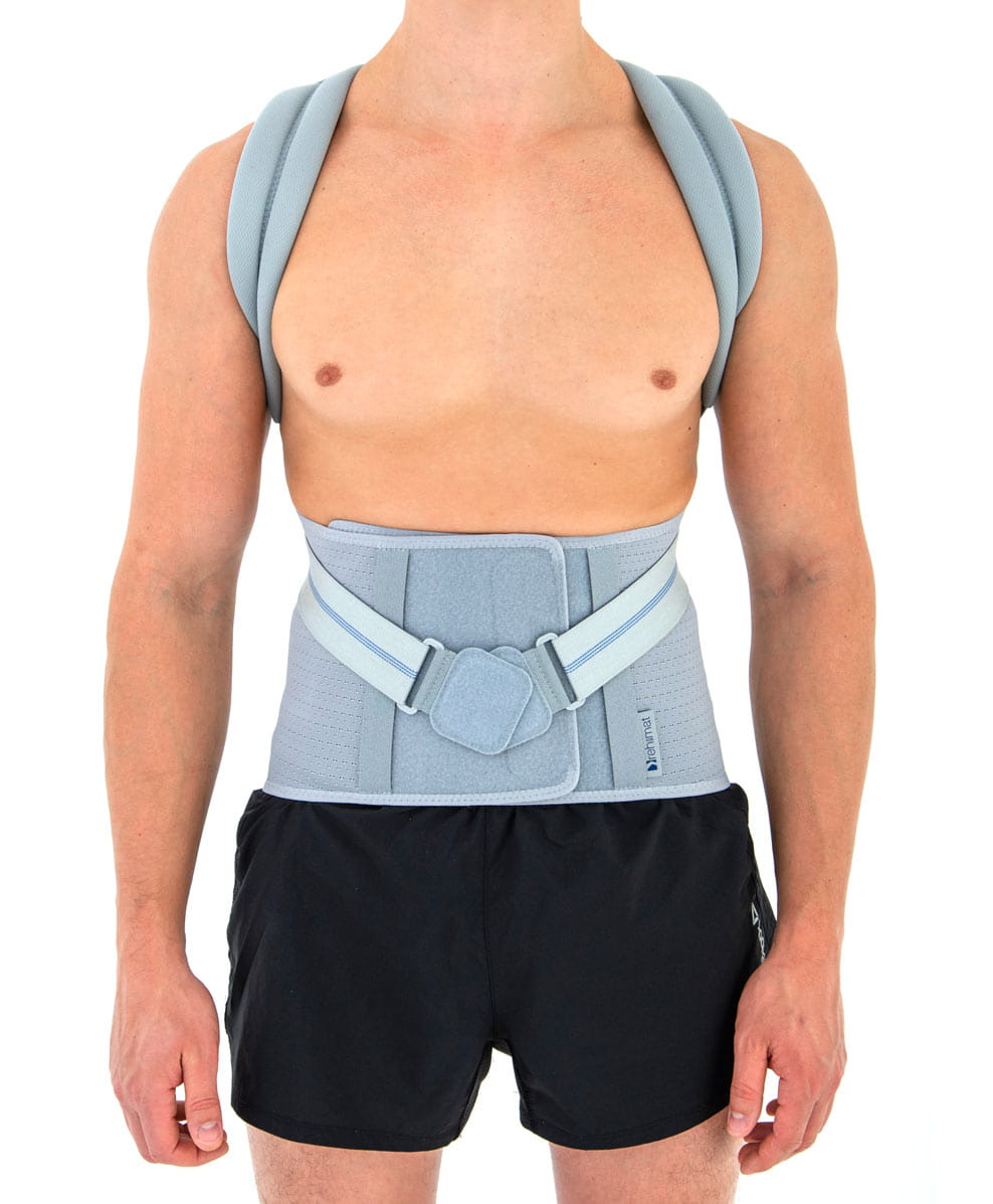 Komfort - połączenie stabilizacji piersiowej i krzyżowo-lędźwiowej eliminuje potrzebę noszenia niewygodnego sprzętu ortopedycznego.