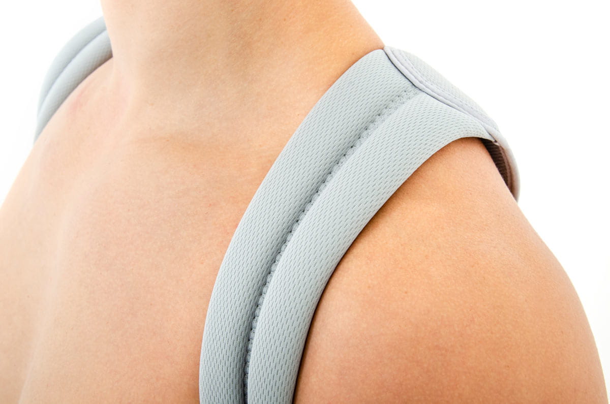 Nielastyczne szelki naramienne są przymocowane do produktu i wyposażone w system regulacji ich długości (pomiar i odcięcie). System opiera się na tym, że nadmiarowe szelki są odcinane po zmierzeniu produktu dla pacjenta.
