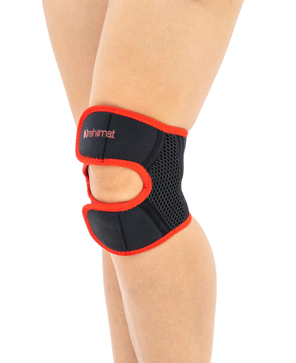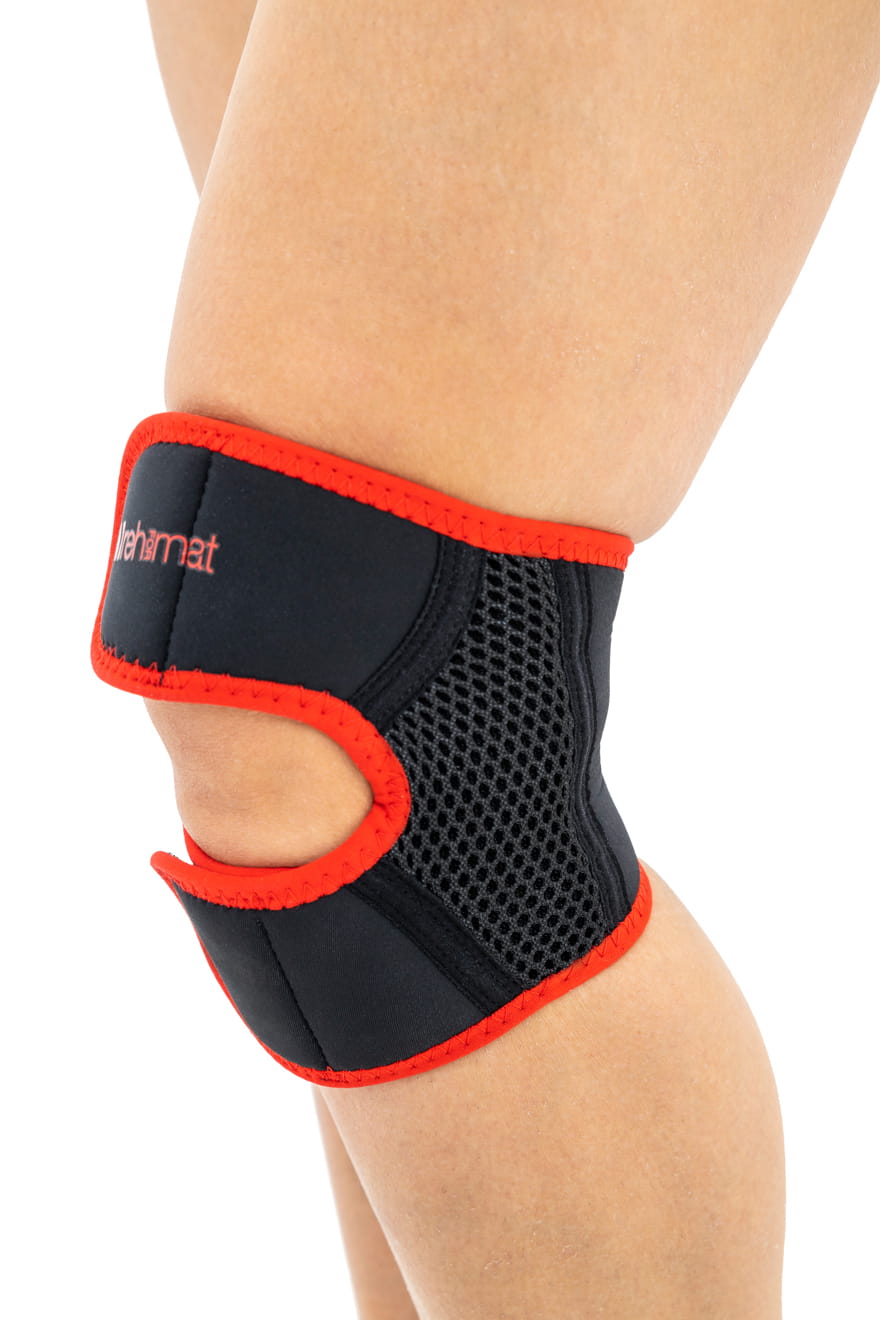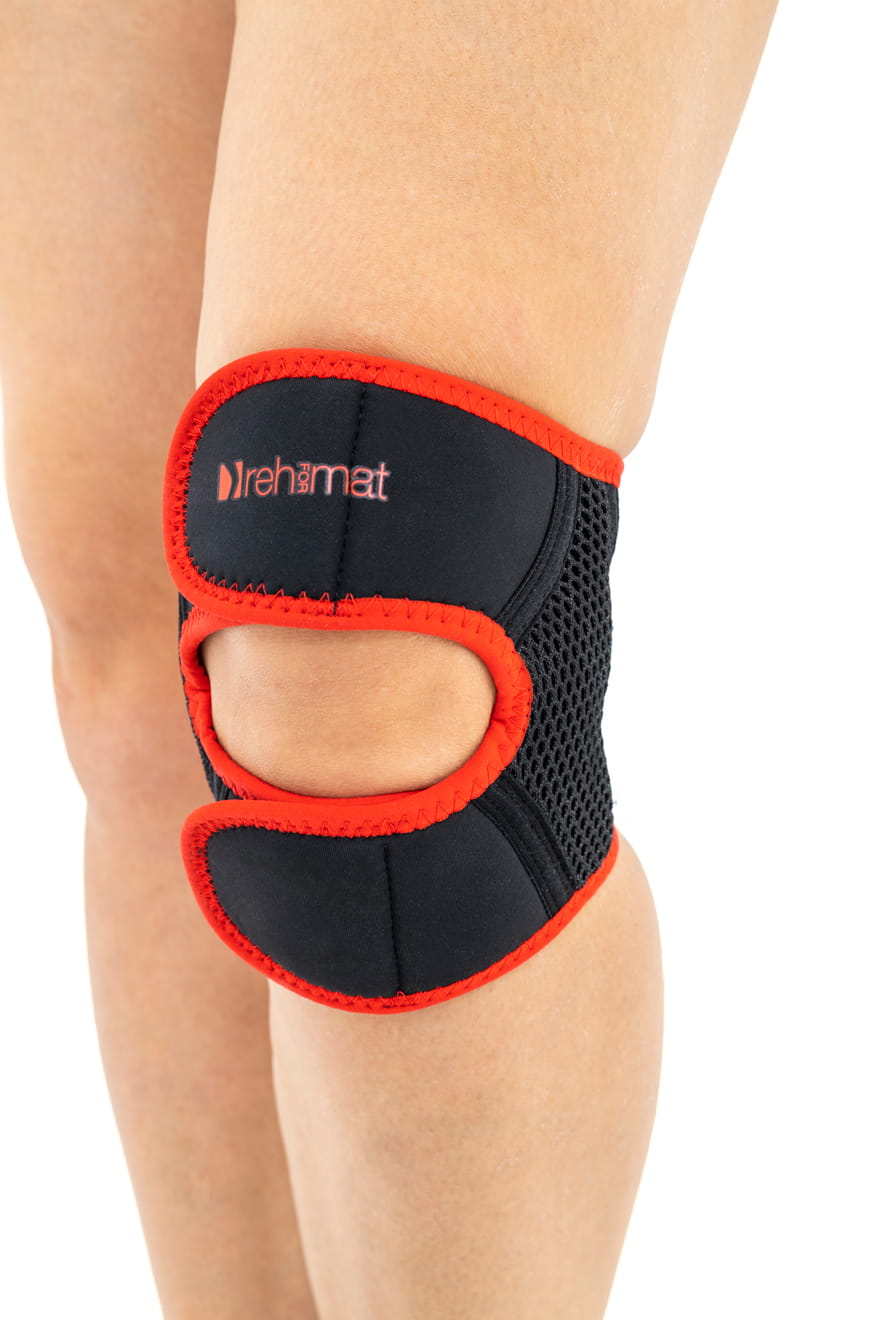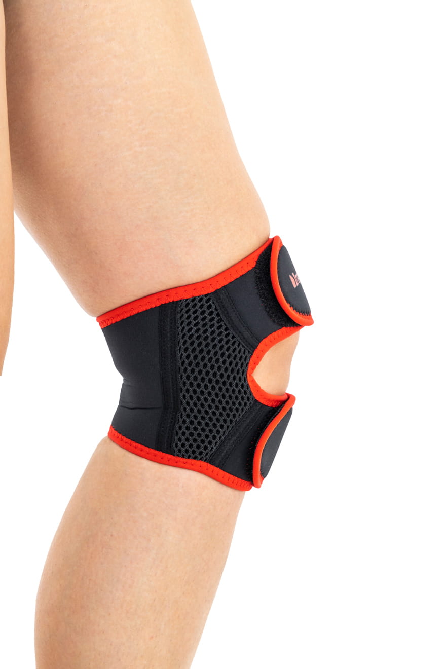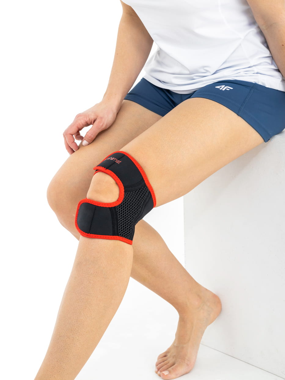 Orteza ma specjalną konstrukcję, która stabilizuje rzepkę i odciąża staw rzepkowo-udowy.