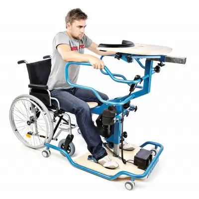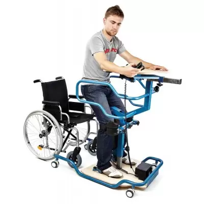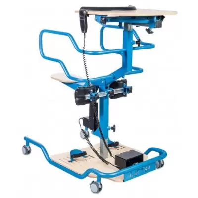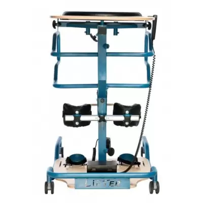 - Dla użytkowników z niedowładem kończyn górnych istnieje możliwość dodatkowego wyposażenia pionizatora LIFTER w stabilizator górnej części tułowia, który doskonale unieruchamia klatkę piersiową.