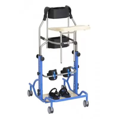 - Cztery ciche koła skrętne, umożliwiają swobodne przewożenie użytkownika w pozycji stojącej.