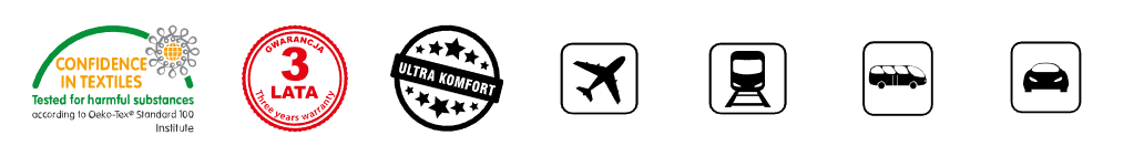 Zapewnia optymalne ułożenie kręgów szyjnych oraz ich stabilizację podczas podróży