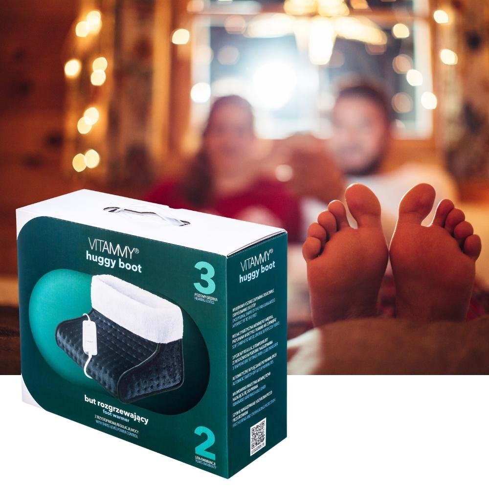 But rozgrzewający VITAMMY HUGGY BOOT szybko się nagrzewa i posiada bezpiecznik, który automatycznie wyłącza się po 90 minutach. Jest łatwy w użyciu, a wyjmowana warstwa wewnętrzna nadaje się do prania.