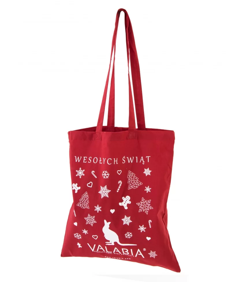 Torba w 100% bawełniana, ekologiczna. Idealna za zakupy, czy zapakowanie świątecznego prezentu, stanowi alternatywę dla sklepowych reklamówek. Lekka, solidnie wykonana, ze świątecznym nadrukiem „WESOŁYCH ŚWIĄT”.