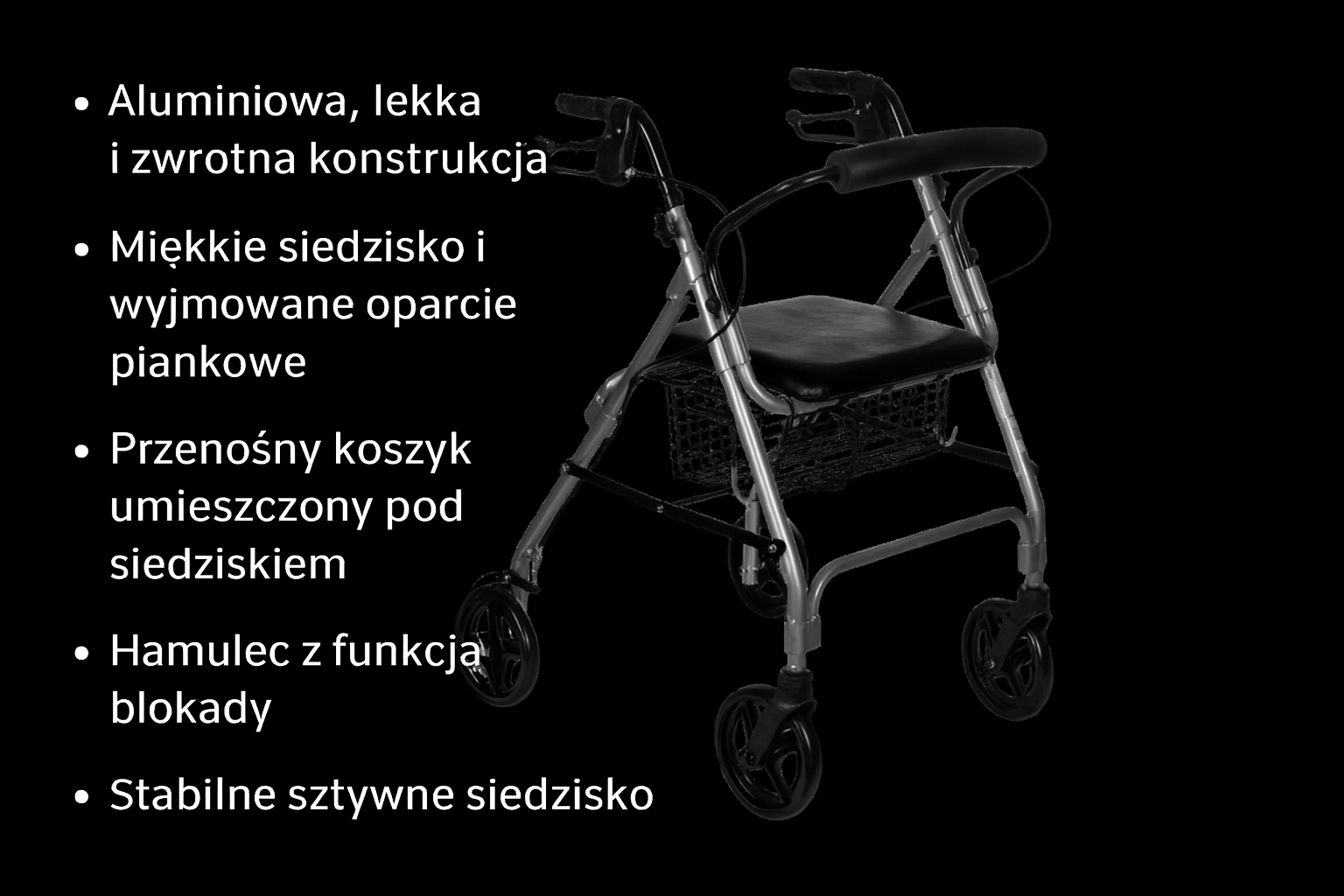Balkonik Denver Premium to połączenie lekkości aluminiowej ramy i wysokiej wytrzymałości. Zapewnia wysoki komfort użytkowania, dzięki wygodnemu siedzisku i wyjmowanemu oparciu. Chodzik oferuje praktyczne opcje takie jak koszyk, regulacja wysokości czy hamulec z funkcją blokady jazdy. To zaawansowany produkt medyczny klasy I, spełniający normy bezpieczeństwa i jakości.